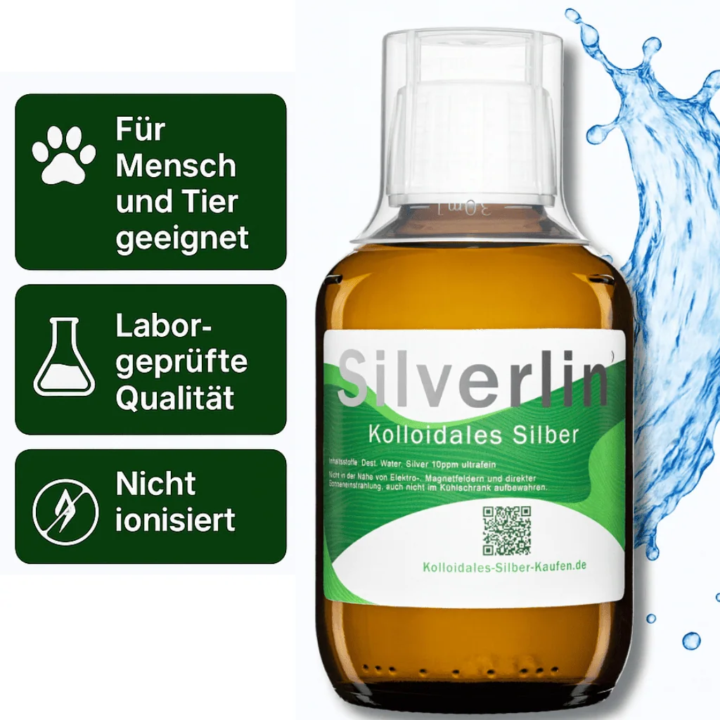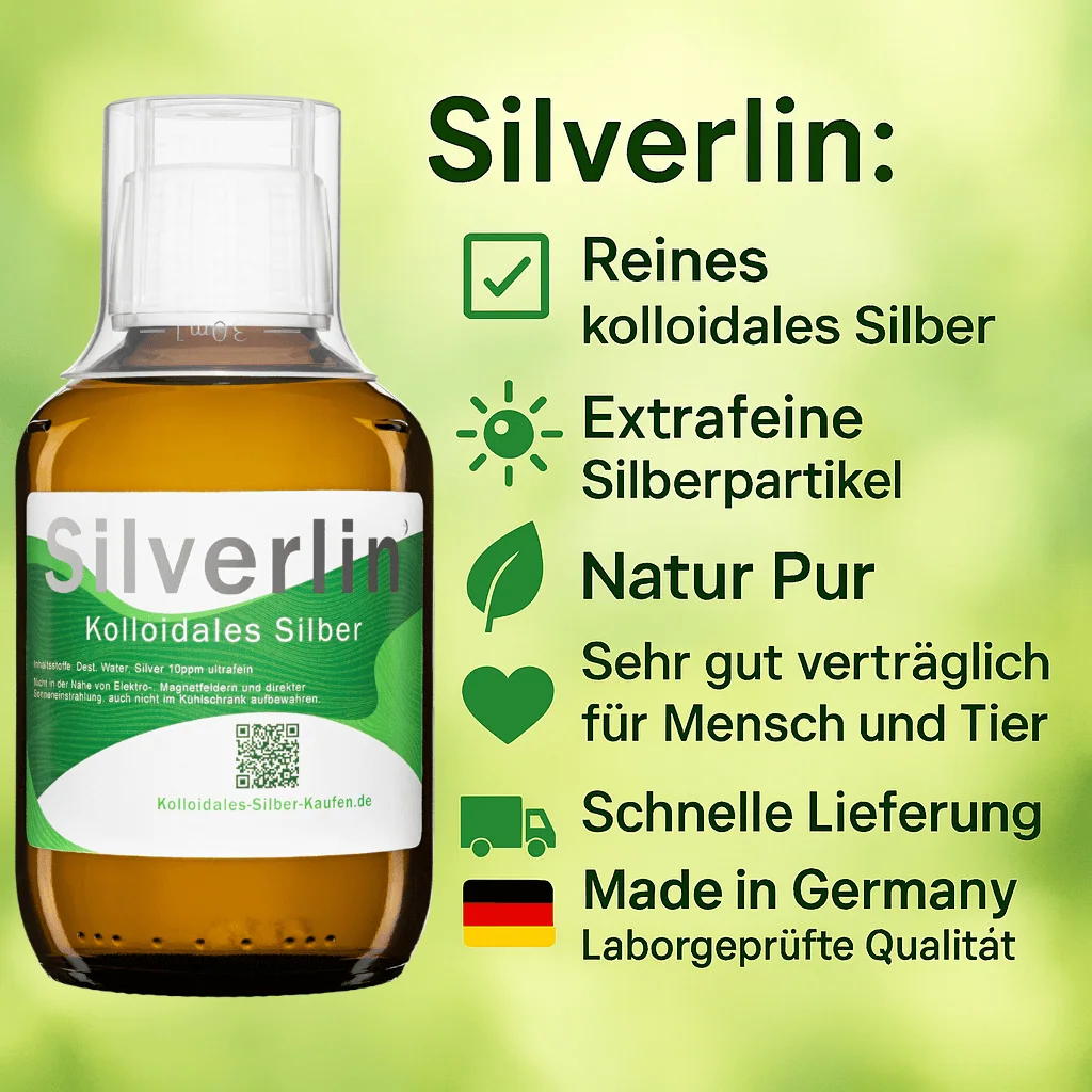 Wichtiger Hinweis:Kolloidales Silber ist ein Qualitätsprodukt und kein Arzneimittel. Es ist dazu bestimmt, die normale Körperpflege oder tägliche Routine zu ergänzen.