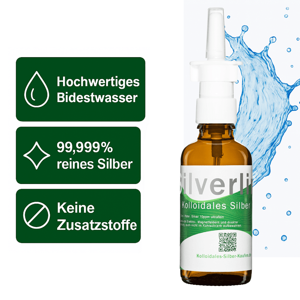 Das Silverlin Nasenspray bietet eine praktische und gezielte Lösung für die Anwendung von kolloidalem Silber. Mit seiner feinen Vernebelung ist es ideal für eine einfache und hygienische Anwendung im Alltag. Dieses Produkt ist für all jene gedacht, die Wert auf Qualität und Reinheit legen.